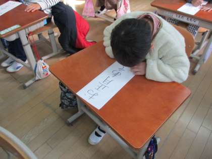 今日の書写の時間,書き初めをしました。初めてフェルトペンを使って書きました。文字の大きさに気を付けて,丁寧に書くことができました。