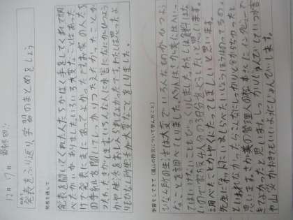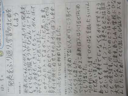 昨日おうちの方や地域の方に聞いてもらった発表会の振り返りをしました。聞いてもらったり,感想をもらったりすることで,新たな気づきが生まれたり,学びが深まっているようでした。一生懸命振り返りを書いていました。