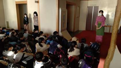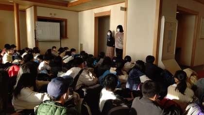 退館式を行いました。お世話になった旅館に感謝の挨拶をしました。