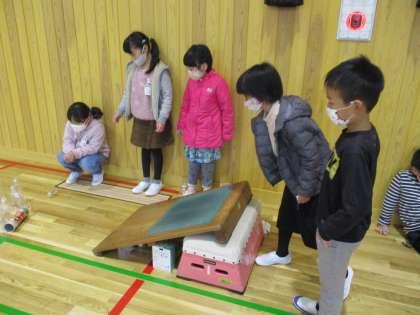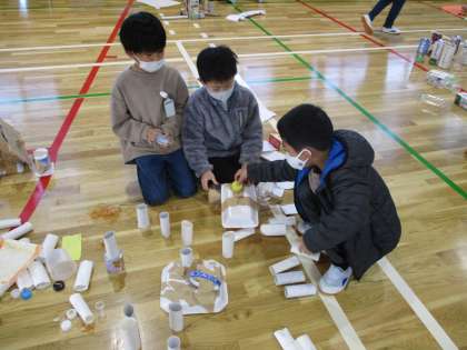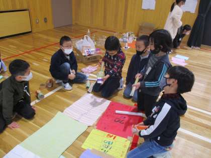 金曜日,2年生の「おもちゃパーティー」に招待してもらいました。1年生は前から楽しみにしていたようです。体育館に行ってみると,2年生が生活科の学習で作ったいろいろなおもちゃがあって,1年生は目をキラキラさせながらそれぞれのコーナーを回っていました。車を走らせるおもちゃ,銃でペットボトルや牛乳パックを撃つおもちゃ,ボーリングなど,どれも楽しかったようです。また,2年生が優しく接してくれて喜ぶ姿もたくさん見られました。終わったあと,「楽しくて,もっと遊びたかった。」「2年生が優しくてうれしかった。」「2年生と仲良くなれたよ。」など笑顔で話してくれました。