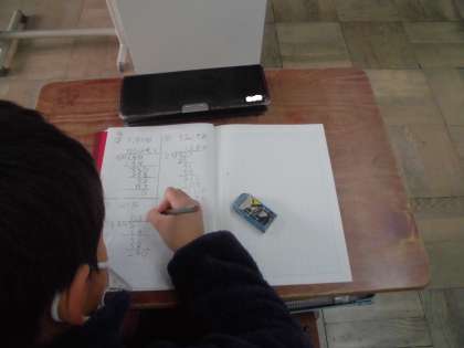 算数の授業では,少数のわり算の筆算の計算に取り組んでいます。日に日に割り算の筆算が複雑になっていき,苦戦している人もいるとおもいます。少数のわり算では,あまりが出ないように割り進めたり,商をがい数に表し答えを求めたりしています。がい数のようなこれまでの学習を取り入れた問題も出てきました。宿題等で苦戦することもあると思います。少しずつ練習して,できるようになってほしいです。