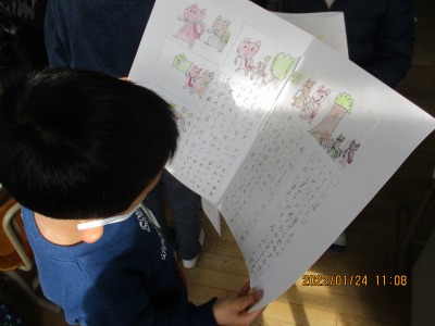 2年「自分で作ったお話を読み合いました。」