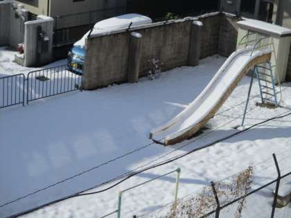 14日(金)でしたか,たくさん雪が降りましたね。一面真っ白な世界が広がりました。給食当番さんも,手を洗う時「寒い寒い!!」「なんか痛い!」と言って,一生懸命手を洗っていました。一番上の写真は,教室から見える公園の様子です。