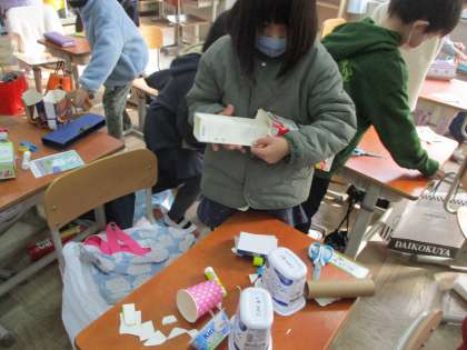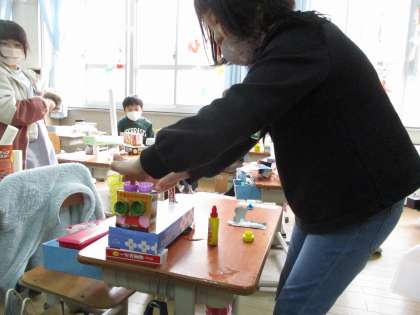だんだんと生き物や乗り物の形になってきて,細かい部分もこだわりながら作っていました。