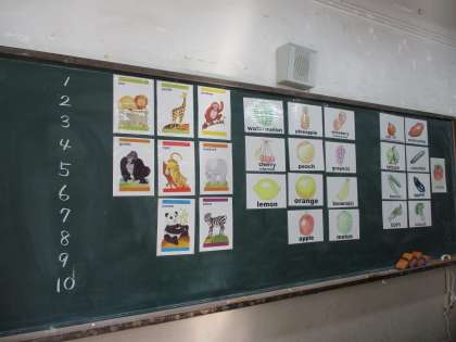 今週はALTの先生との最後の英語活動でした。この1年間で学習した「1〜10までの数」「色」「動物」「果物や野菜」の言い方をもう一度練習して,「○○バスケット」を楽しみました。久しぶりの言葉もありましたが,みんなよく覚えていました。とても楽しく学習できました。