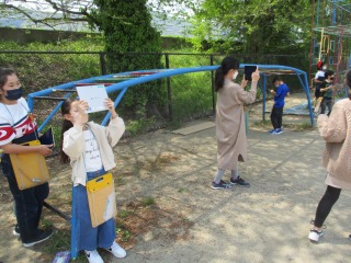 理科で「天気と情報」の学習をしました。本日は,晴れている時の雲の様子を観察しました。午前と午後に同じ場所でGIGA端末を使用して写真を撮り,雲の位置や大きさ,色や形などを観察しました。今回は北側の空を観察しましたが,「違う方角の空も観察してみたいな。」と,子ども達は空の様子に興味津々でした。