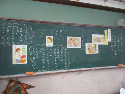 今週の道徳の時間は,「きっぱりことわる」ことについて考えました。お話で主人公の気持ちを捉えたあと,友達から悪いことに誘われたとき,断るためには何が大切なのかを話し合いました。子どもたちからは「いいか悪いか判断する。」「勇気がいる。」「自信をもって断る。」「はっきり気持ちを伝える。」など,大切なことをしっかりと考えることができました。