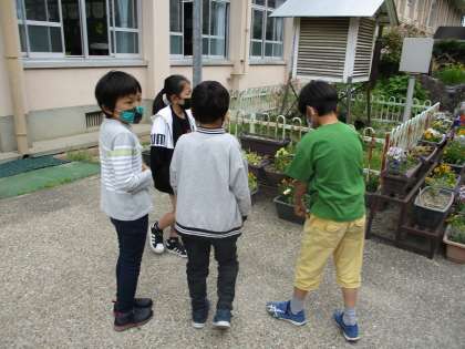 図画工作「ここにいたい」の学習では,学校の中でお気に入りの場所を見つけて心地よくなるように工夫をします。昨日はグループごとに,場所を探したりイメージ図を話し合ったりしました。それぞれ選んだ場所がどのように変身するのか楽しみです。