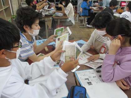修学旅行では,1日目に大塚国際美術館へ行きます。グループでどの順番で回るのか,どの作品を見るのかなど,計画を立てる話し合いをしました。5年生の図工の学習で使ったアートカードも参考にしながら,見たい作品などを調べていました。