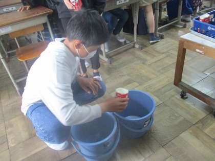 給食の牛乳パックを今年度から洗浄することになりました。6年生は,ゴールデンウィーク明けから実施しています。動画で洗い方を確認しました。さすが6年生です。すぐに慣れて,スムーズに給食を食べ終えた子どもから,牛乳パックを洗っています。