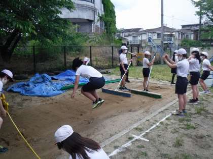 立ち幅跳びでは,身体をふりこのように大きく振って,遠くに跳べるように意識しました。5年生で走り幅跳びの学習もしていたので,みんな協力して準備や片付けもできました。