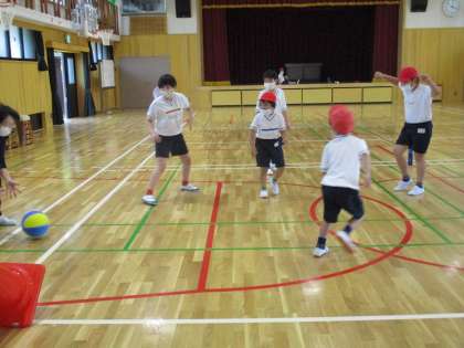 最近必ず体育の際にリクエストが出るのが「転がしドッジボール」です。みんな転がすことも,よけることも上手になってきました。速いボールがくると,大盛り上がりで楽しんでいます。