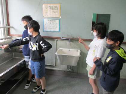 今週から社会科では「くらしと水」の学習をしています。今日は学校内のどんなところに蛇口があるのかを調べました。そして,学習問題をつくりました。「こんなにたくさんの水を使っているのに,どうして水がなくならないのだろうか。」「水はどこから運ばれてきているのだろうか。」など様々な視点で考えていました。