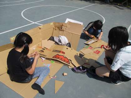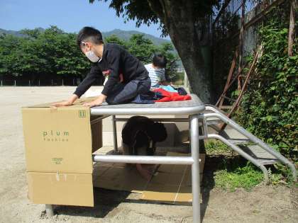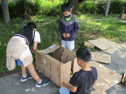 段ボールを使って,自分たちの居心地がいい場所を作りました。作っている時に子どもたちからは「ここはこうしたい!」「こんな風にしたらもっとよくなるよね」など楽しそうな声が聞こえてきました。
