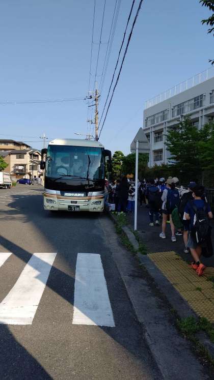 バスに乗ります。お見送りありがとうございます。行ってきます。
