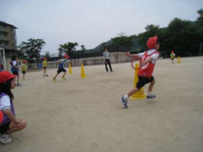全員,交流学級の体育に参加しています。大人数でチーム戦ができたり,交流学級の友だちと一緒にからだを動かしたりすることを,みんな楽しみにしています。