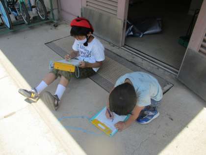 数日間,雨と晴れの日のバランスがよく,野菜がぐんぐん成長しています。みんなのお世話のやる気も上がり調子です。本日は,野菜の成長を観察カードに記録しました。成長を,引き続き見守っていきたいと思います。