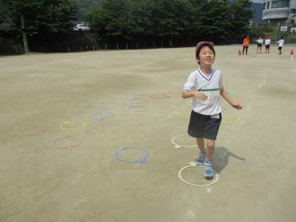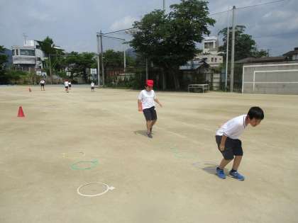 本日はバラエティー走を中心に体を動かしました。ケンパステップやグージャンプ,コーンでボール運びなど,バラエティー豊かに50m走りました。