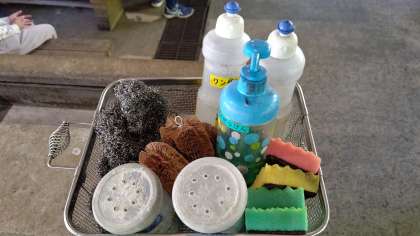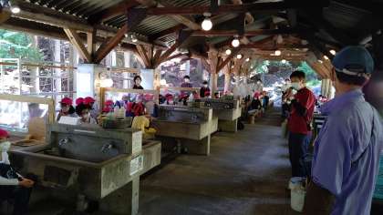 作る前の説明をしっかり聞いてます。洗い方も間違えないように。