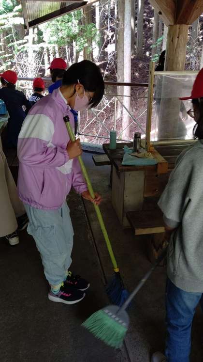 来たときよりも美しく。掃き掃除も積極的にはじめました。