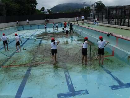 6年 プール清掃がんばるぞ!
