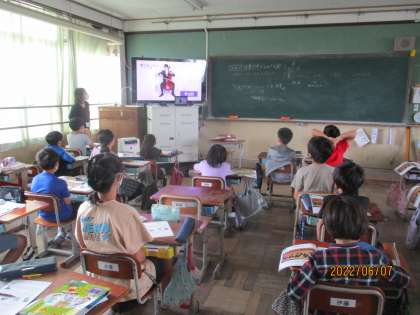 音楽では,「アイネクライネナハトムジーク第一楽章」を聴きました。曲に出てくる,バイオリン・ビオラ・コントラバスなどの楽器を確かめながら鑑賞をしました。子どもたちは,楽器の大きさに驚きながら,楽器が奏でる音を確かめました。楽器も曲もたくさん知っていってほしいです。