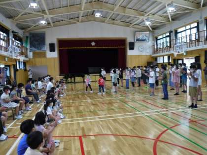 1年生を迎える会での出し物を考えているときに「メダルをプレゼントしたい!」という意見が出たので,1年生にメダルを作り,プレゼントしました。1年生に喜んでもらえてよかったね!