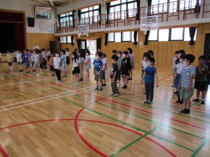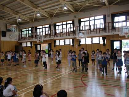 今日は初めての迎える側として実施した,一年生を迎える会を行いました。今日の迎える会のためにたくさん練習してきましたが,本番では練習よりもよりきれいな歌声と大きい振り付けで校歌を歌うことができました。一年生もとても喜んでいる様子でした。