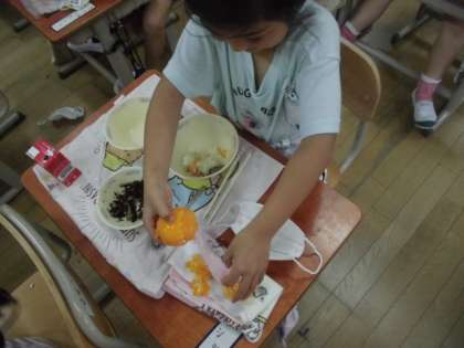 今日の給食にみかんがでました。