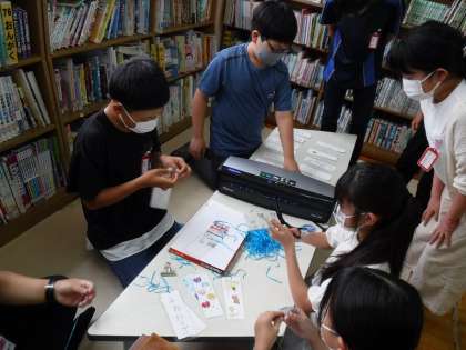 今週は,あじさい読書週間です。図書委員会の人達は,中間休みや昼休みにしおり作りや本の貸し出し体験をしています。図書室を覗いてみると,6年生がたくさんいました。委員会の人達だけでは,しおり作りが大変だからと,ラミネートをしたりリボンをつけたり,他の6年生もお手伝いをしてくれていたようです。素敵なしおりが仕上がっていました。ありがとう!