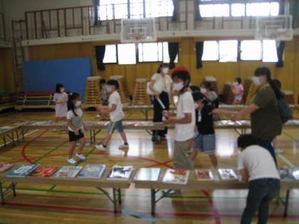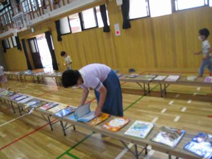 図書室に自分が置いてほしいなと思う本を,じっくり選んでいました。