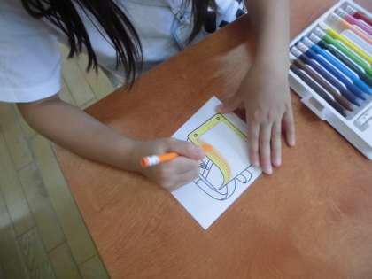 最後に自分だけのお気に入りのランドセルの色を塗って,自分の好きな色を表現しました。