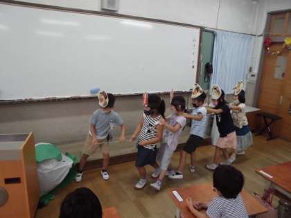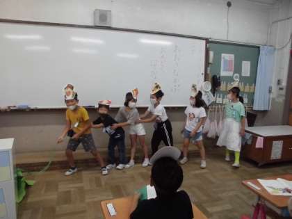 国語科の学習で「おおきなかぶ」の音読劇を行いました。