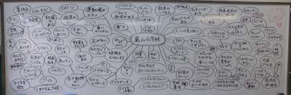 みんなで嵐山小学校の魅力を出し合い、ウェブマップにしました。ホワイトボード一面、子ども達の意見でいっぱいになりました。次は、つながりを見つけたり、グループごとにわけたりして考えたことを整理していきます。自分たちで学習を進めることができて、みんな総合的な学習が好きになりました。