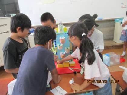 友達の作品で遊ばせてもらう子どもたちの目は生き生きしていました。とてもよい雰囲気でした。