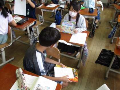 今日は国語の授業で2年生になってから読んだ本の中から、友達に紹介したい本を実際に手元に用意して、紹介する学習をしていました。これからもたくさん本を読んでいって、友達にもおすすめしてほしいです!