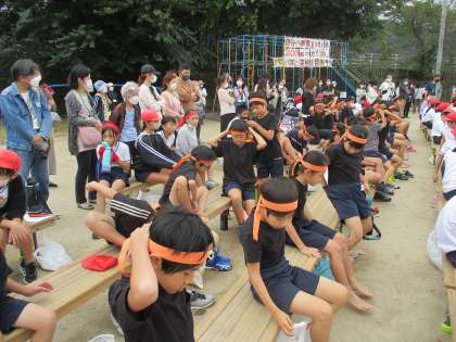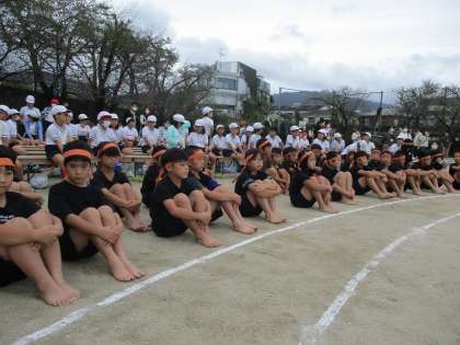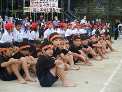 4年生のメインは団体演技「我武者羅51〜ソーラン節〜」でした。出番前、さっと着替えて座って待っている姿からも緊張感が伝わってきました。