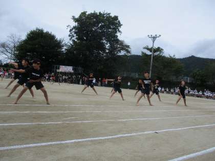 グループごとに分かれて入場し、ソーラン節の音楽に合わせて踊りが始まりました。縦と横の列をそろえることを意識し、大きな声を出しながらダイナミックに踊っていました。