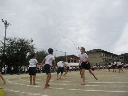 今年の集団演技は、大縄も取り入れました。グループでの八の字。ダブルダッチ。5人で三重に跳ぶ技にも挑戦しました。毎日休み時間に自主的に集まって練習しました。今まで成功できなかったグループも、本番成功することができて、とても感動しました!!