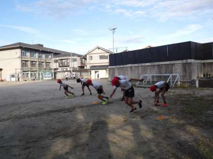 10月30日(日)に開催される陸上競技記録会・持久走記録会にむけて練習を始めました。嵐山小学校からは10名の児童が出場します。はじめは、全員でウォーミングアップをし、その後種目に分かれて練習をしました。