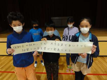 「運動会が終わっても 大きな声であいさつし 授業では手を挙げて発表しよう」です。