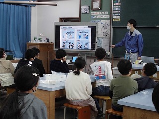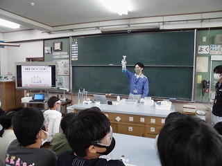 12日(水)の理科の学習で、三洋化成の方に、身の回りで役に立っている化学について、SDGsと関連させながら、授業をしてもらいました。水と油が界面活性剤の働きにより、混ざる様子を実験して確認したり、ウレタン製のクッションを作る実験などをしました。