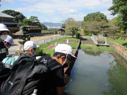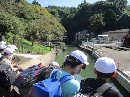 お弁当を食べた後、インクラインの見学に行きました。今、社会科の学習で琵琶湖疏水のことを学んでいるので,「この前、教科書で見たところだ!」「あの古い建物は発電所かな。」など思い出しながらしっかりと見ていました。