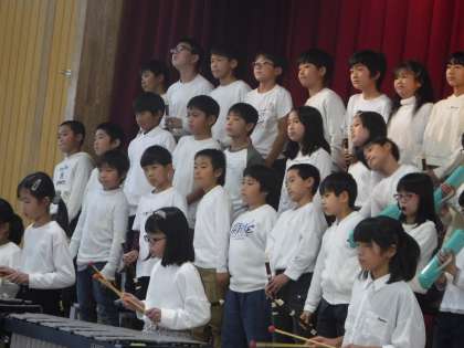 「茶色のこびん」の合奏では、1番・2番はパートごとに、最後はすべての楽器で演奏しました。演奏しない間は、リズムに合わせて体を揺らして曲の楽しさを表現しました。