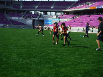 セレマChampionship2022全国小学生タぐラグビー選手権大会京都府予選がありました。今回は、亀岡のサンガスタジアムで行われ、会場の大きさに子ども達もテンションが上がっていました!6年生からは、チャンピョンリーグとチャレンジリーグに1チームずつ出場しました。少ない練習期間の中で、教えていただいたことを実践しようとする姿がとても伝わってきました。