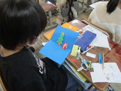 今週の図画工作科の学習では、飛び出す仕組みを使って、気持ちを伝えるカードを作っています。伝えたい相手を決めて、形や色を工夫したりメッセージを書いたりしています。子どもたちはとても楽しそうで、素敵なカードができあがりそうです。
