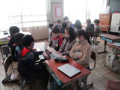 総合的な学習の時間で調べてきたことを、来週の水曜日に3年生に向けて発表します。今日は、学年の友達に発表し「課題」や「成果」を見つけていました。