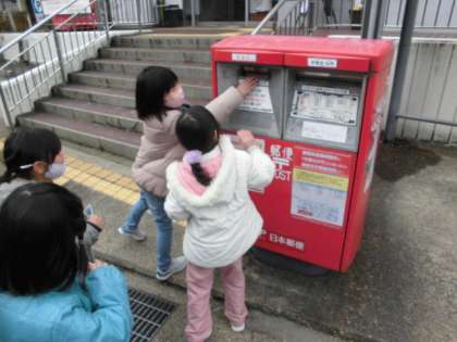 地域のお年寄りの方に書いた年賀状をポストに入れに行きました。