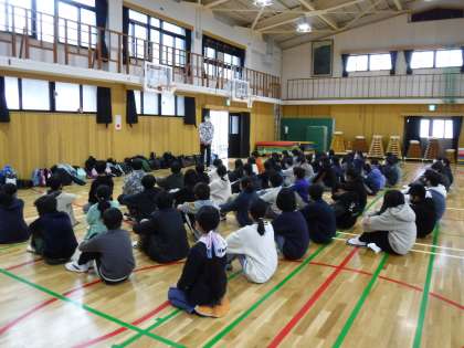 今日から3学期が始まりました。6年生にとっては、小学校生活6年間最後の3か月となります。4時間目には、学年集会を行いました。担任からの話を聞く子ども達は、卒業が近づいていることを今まで以上に感じ、話している人の目を見て一生懸命に聞いていました。