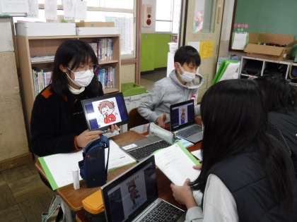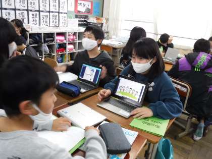 外国語の時間に、将来の夢を発表しました。今までに学習した表現をたくさん使いながら、なりたい職業の理由なども話しました。しっかりと相手の目を見て、友達の発表のよいところを探そうとする姿も見られました。「Good luck!」「You can do it!」など、相手を応援する表現も知り、積極的に使っていました。